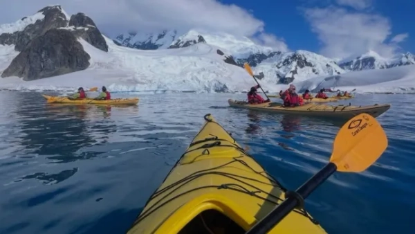 В іншій публікації Ніколь поділилася захопливими кадрами океану та вражаючого арктичного ландшафту, а також милим фото родини пінгвінів з їхніми дитинчатами. Вона також опублікувала знімок, на якому вона веслує на каяку сонячного дня, досліджуючи віддалені краєвиди. (Фото: Ніколь Кідман/Instagram)