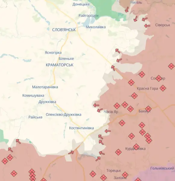 У випадку окупації Костянтинівки ворог почне наступ на Краматорськ / Карта DeepStateMAP