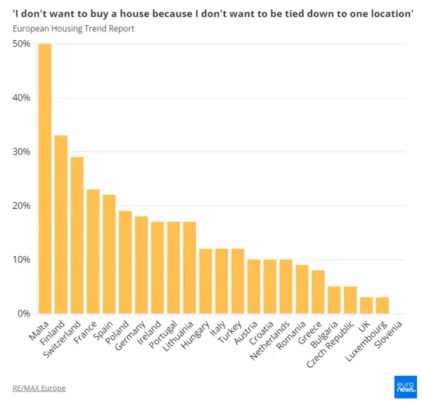 Скільки європейців не хочуть купувати житло, щоб зберегти мобільність / Інфографіка Euronews