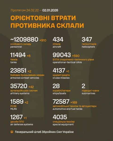 Ми зібрали для вас інформацію про тисяча чотириста дев’ятий день Великої війни: чим жили Україна та українці 02 січня 2025 року.
