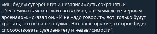 31 березня він назвав тактичну ядерну зброю (ТЯЗ), яку росія хоче розмістити у білорусі «нашою». (Президент РФ, нагадаємо, заявив, що «Мінськ не отримає контролю над ядерними зарядами»).