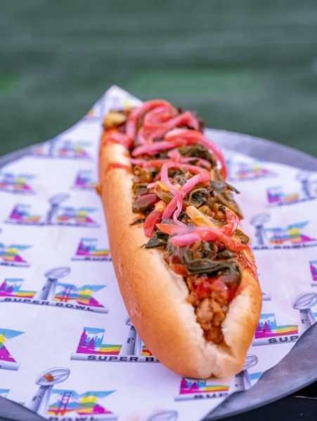 Справедливості заради можна сказати, що значна частина їжі, яку пропонували на цьогорічному Супербоулі, була досить далека від стандартних хот-догів та пиріжків, які ви можете поласувати на звичайному спортивному заході. Команда кейтерингу стадіону, Levy Restaurants, пропонувала апетитний асортимент страв, і ми відчуваємо голод, дивлячись на деякі з них. Але якщо ви захочете наїстися всередині стадіону, це вам дорого коштуватиме. Особливо, якщо ви хочете з'їсти бургер. (Фото: Levy Restaurants)