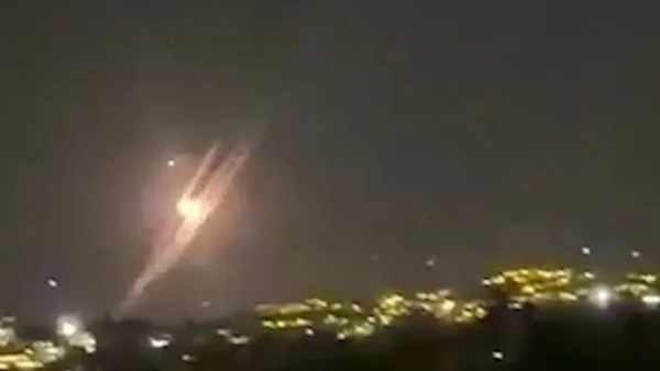 Раптом снаряди вибухнули в повітрі, після того як промінь світла злетів у нічне небо.