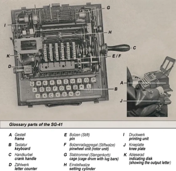 На відміну від Enigma, яка використовувала ротори з електричним приводом, SG-41 спиралася на повністю механічну систему, що базувалася на принципі «штифтів і виступів», вперше розробленому шведським піонером криптографії Борисом Хагеліном.